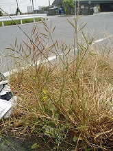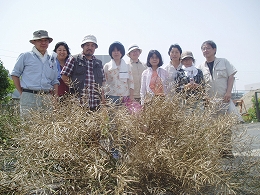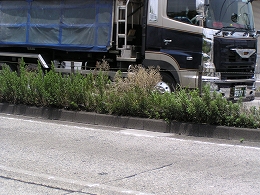 『遺伝子組み換え食品を考える中部の会』では、四日市港と隣接する名古屋港についてもセイヨウナタネの自生調査を行ってきました。とくに港区潮見町の潮見埠頭から県道55号線船見交差点を経て北進、国道23号線竜宮ICまでの区間についてをその重点区域としています。 該当する潮見埠頭の製油会社によれば、社外へのナタネの陸送はないことになってはいるものの、04年からわたしたち中部の会による10数回の調査から、継続的なセイヨウナタネの自生が顕在することを確認しています。 本格的な調査抜取作業は昨年5月以来約1年ぶりということもあり、その現状と調査結果には大いに注目するところでした。今回の参加者は中部の会のメンバーをはじめとする10名でした。今回は初めての参加者もあり、「まさかこんなところにこんなにたくさん・・」というおどろきの声もあがっていました。 3つのグループに分けて調査・抜取 今回の調査では、全工程を3グループに分割。製油所から埠頭内ブルーボネット前までを『Gグループ』。ブルーボネットから船見交差点までを『Oグループ』。さらにR23号竜宮ICまでを『Yグループ』としました。 ■Gグループの結果 やはりセイヨウナタネの自生は顕在的に見られ、とくに顕著なのが中央分離帯での自生。三井物産(潮見町37番地7)付近の県道中央分離帯では、すでに種子を放出中のナタネの群生が見られました。検査の結果採取撤去した10株すべてが除草剤バスタ耐性(LL:リバティリンク物質名グルホシネート耐性)であることを確認しました。ほかに除草剤ラウンドアップ(RR:物質名グリフォサート)耐性セイヨウナタネ1株を確認撤去。