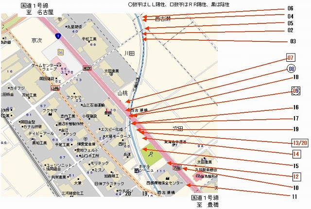 豊川市国道1号沿線のセイヨウナタネ自生調査 08/04/13 |