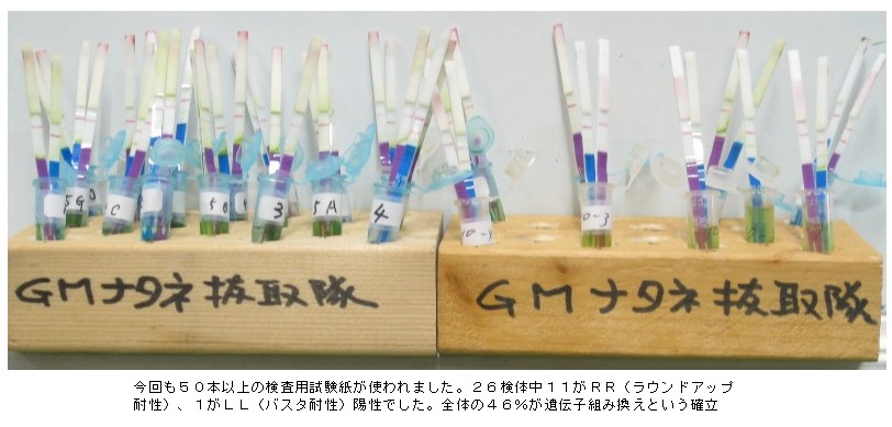 こういったケースは中部の会でも予想外でしたが、セイヨウナタネのほかにも遺伝子組み換え作物の種子が陸路搬送されている可能性もあり、広い視野での監視活動を続けてゆく必要があるのではないでしょうか。 |