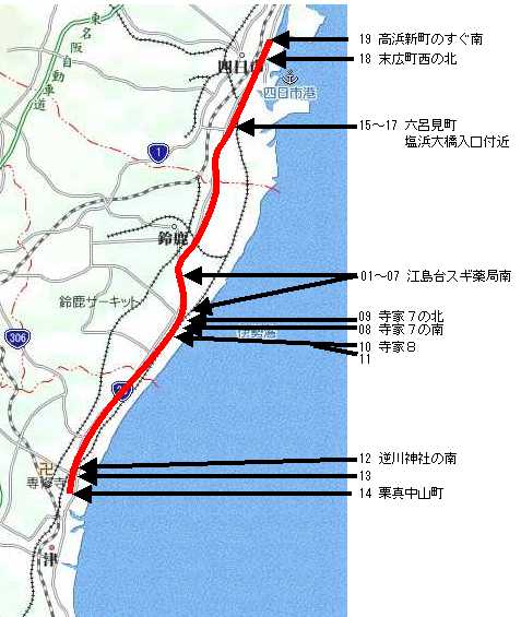 今回は少人数による大雑把な調査であったため、右の地図のように行程をくまなくというわけには行きませんでした。しかしながら交雑雑草と思われる13検体を採取し、試験紙による簡易検査の結果、うちなんと12検体が除草剤ラウンドアップ、バスタいずれかのGM陽性であることを確認しました。