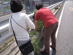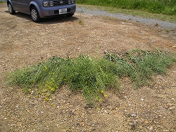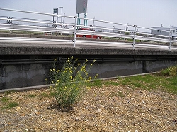 国道1号線西古瀬橋より北方の西古瀬川堤防を望む。この一帯では複数のアブラナ科植物が多数混在している |