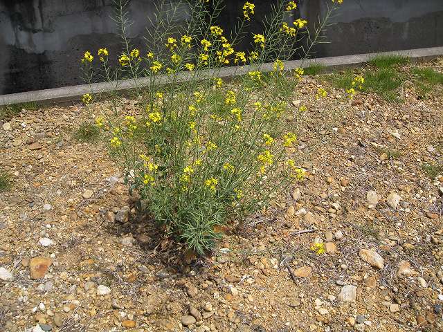 白鳥町西古瀬橋付近の河岸堤防では、在来ナタネ、カラシナ、作物の野生化したものなどのアブラナ科植物が混在して自生しています。よく観察すると、それぞれの区別がむつかしいものもあり、交雑がおこっている可能性を感じます。