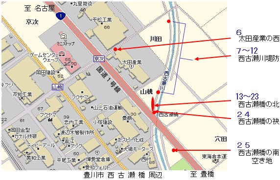 ここも除草剤常用。過去においてRR陽性を確認しています。この近くで在来ナタネとの交雑と見られる個体を確認(08/04/13)