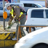 現地での抜取作業は中央分離帯でも行なわなければならないため、安全を期して、全員、視認性の高い安全ベストの着用をします(関連企業様からの提供をいただいています)。