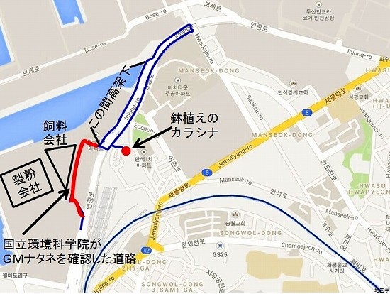 韓国国立環境科学院によると、GM生物の調査の結果、韓国の主要な港、GM作物を扱う加工工場、畜産農家周辺とその輸送経路で、トウモロコシ、大豆、ワタ、ナタネが確認されています。2009年の調査では、全国で8ヶ所の自生を確認していますが、2012年では26ヶ所となっており、GM汚染の実態が拡大しつつあります。
