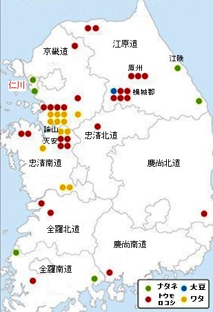 韓国では、ごま油が多く消費されますが、揚げ物には菜種油も利用されており、食用としてのナタネの消費も考えられるため、その自生についても調査の必要があるように思われます。