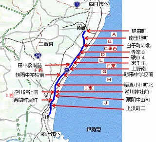 ・ | 歩道があり、安全確保のしやすい、鈴鹿市『肥田町』以南とした |