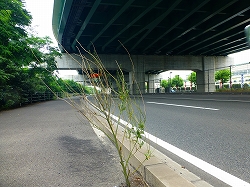 名古屋方面への西知多産業道路は自動車専用のため、車を止めての調査は不可。多くのカラシナ、セイヨウナタネを確認しました。