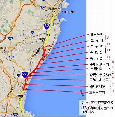 また『北玉垣町』以北の国道23号では、無歩道の区域が多く、作業に危険を伴うため、作業区域から除いています(多くのナタネが駆除できずに放置されている)。