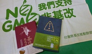 陳(Chen)氏の著書と「台湾非GM推進連盟」の幕