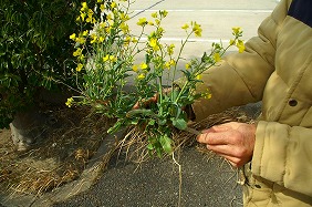 イヌカキネガラシ、ハタザオガラシなどのアブラナ科雑草とセイヨウナタネ(brasica naps)の交雑については確証があるわけではありませんが、次の点から、種関の交雑が起こっているのではないかというのが中部の会での見解です。
