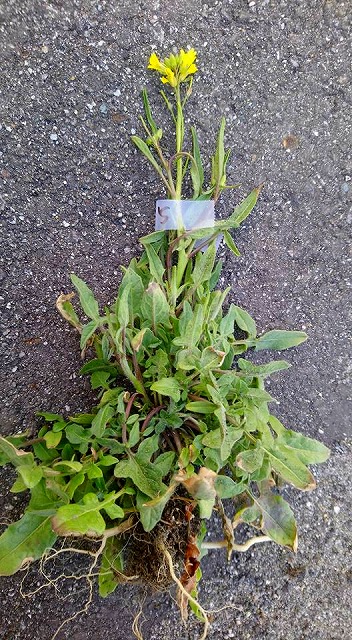雑種と思われる個体の形体が、セイヨウナタネとも他の雑草ともちがう