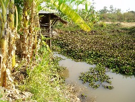 イーサン地方は水持ちのわるい砂土なので、乾季にはとくにすべてが乾ききってしまう。日本の冬よりもっと冬景色という感じ。雨季に降る雨は川を流れてくるというものではなく、次第にたまってそこら中が水の世界になるという表現がふさわしい感じです。雨季の雨は日本のようにじめじめだらだらしたものとは違って、毎日夕刻にちょうどバケツをひっくり返す感じで一気に降ってさっと止むというもの。
