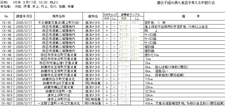 下の表でNo.がYK-Nとあるは、『四日市ナタネ』の略称です。その末尾の番号と左の地図の番号が符合します。