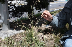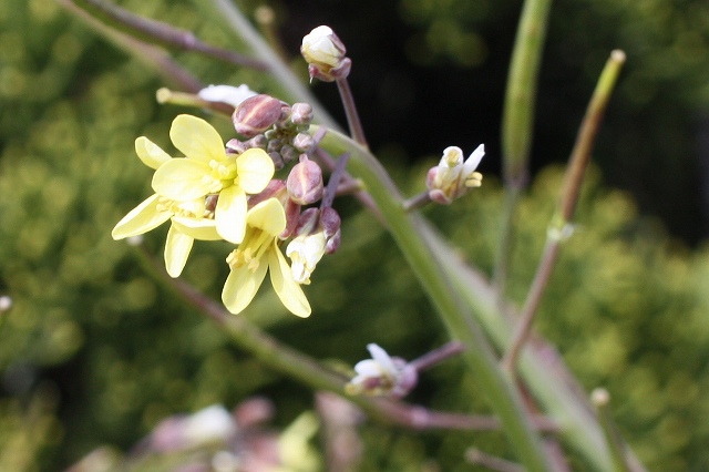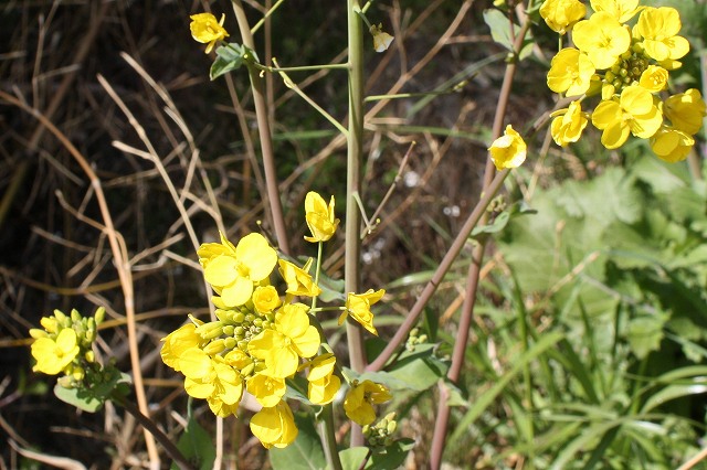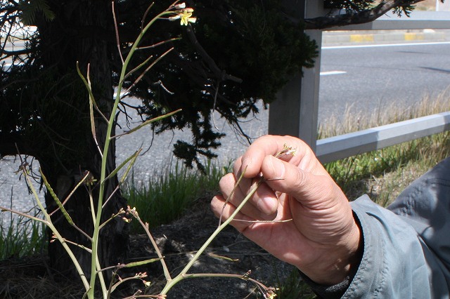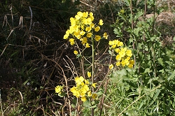 例年と比べ、冬が寒冷少雨であったため春の訪れが遅く、アブラナ科の植物においても生育、開花ともに遅れ気味であるらしい。例年と比べ、確認されるナタネの花も少ない。ただし、その種類は6、7月と比べると格段に多い。 |  |