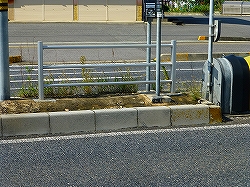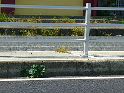 ここに写真01で示すように、まったく被覆処理をしない分離帯では、雑草が生い茂るばかりでなく、それに紛れてセイヨウナタネが自生していても、道路脇から確認することが難しく、抜取作業も困難で危険を伴います。しかしながら、コンクリートなどで被覆を施した部分では抑草効果があり、ナタネの自生も少なくなります。