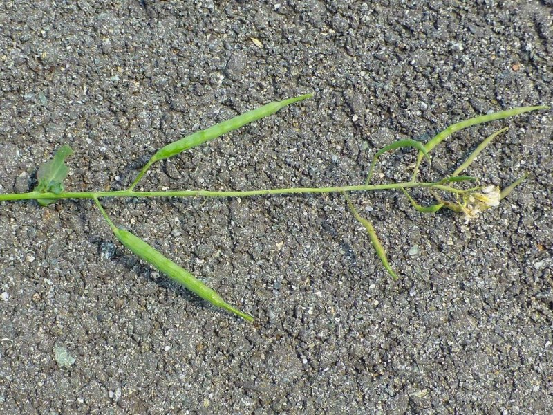 花が白く、種子が大きく、種鞘が膨れている(大根との交雑を思わせる)