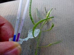 簡易検査の結果、除草剤バスタ耐性(LL:リバティリンク)を検出しました。