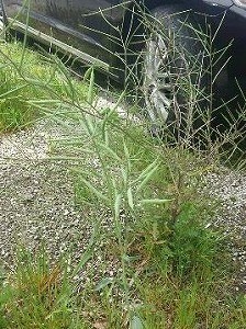 2010年6月、最初に三重県でセイヨウナタネとハタザオガラシのGM雑種と思われる個体が見つかった時と同じ状況です。10cmほどしか離れていない位置でナタネとハタザオガラシが生えており、その間に見かけない雑草が生えていました。23号線沿いのあちらこちらに同様の光景が見つかったのですが、その雑種のほとんどからGM陽性を検出しています。