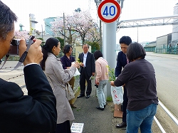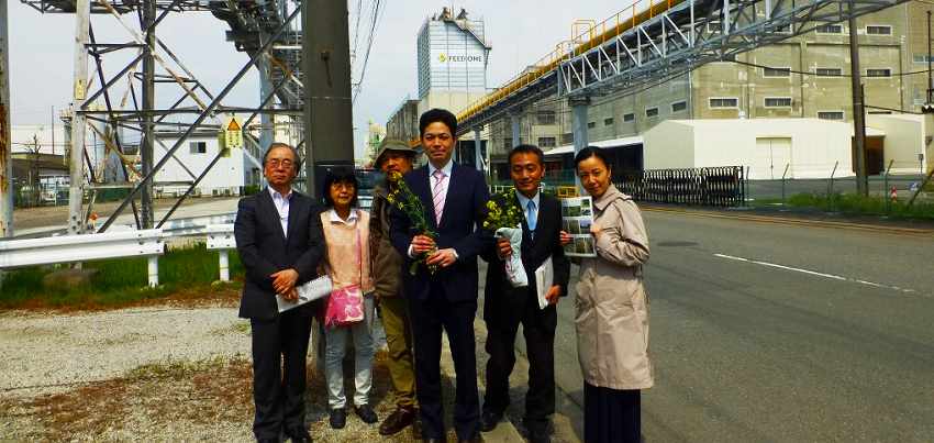 視察を行った飼料会社では飼料用としてナタネも扱っている模様で、この事業所から西知多産業道路、県道55号から名古屋市の国道23号竜宮インターを経て四日市以西に向けてナタネの陸送を行っていることが、中部の会の調査でわかっています。しかしながら、四日市市の国道23号『西末広町』以西については、四日市港からも松阪市にセイヨウナタネの陸送が行なわれており、それぞれの輸送経路が交錯してしまうため、北浜ふ頭からのセイヨウナタネの輸送先が特定できていません。 |