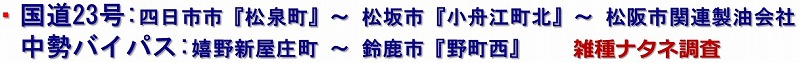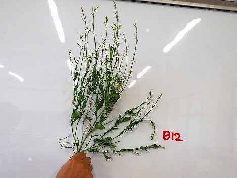 | ・ | 全行程をA〜Cの3班に分け、1班3〜4名、おもに車中からの視察としました。各班の受け持ち距離が長いため、セイヨウナタネおよびその雑種とみられる、目立つ個体について抜取り採取しました。 |