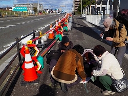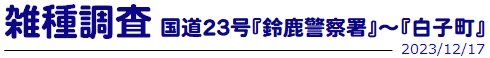 遺伝子組換え食品を考える中部の会では、23/12/17、三重県の国道23号『鈴鹿警察署』〜『白子町』で、雑種ナタネの自主調査を行いました。今回の調査は、小人数での実施のため、以上のように1.3kmの短い区間としました。