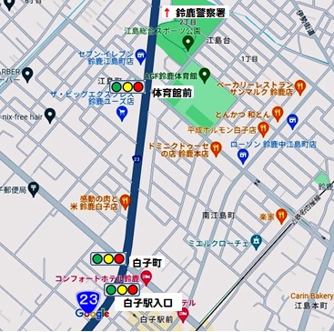 鈴鹿市国道23号江島台『体育館前』交差点付近