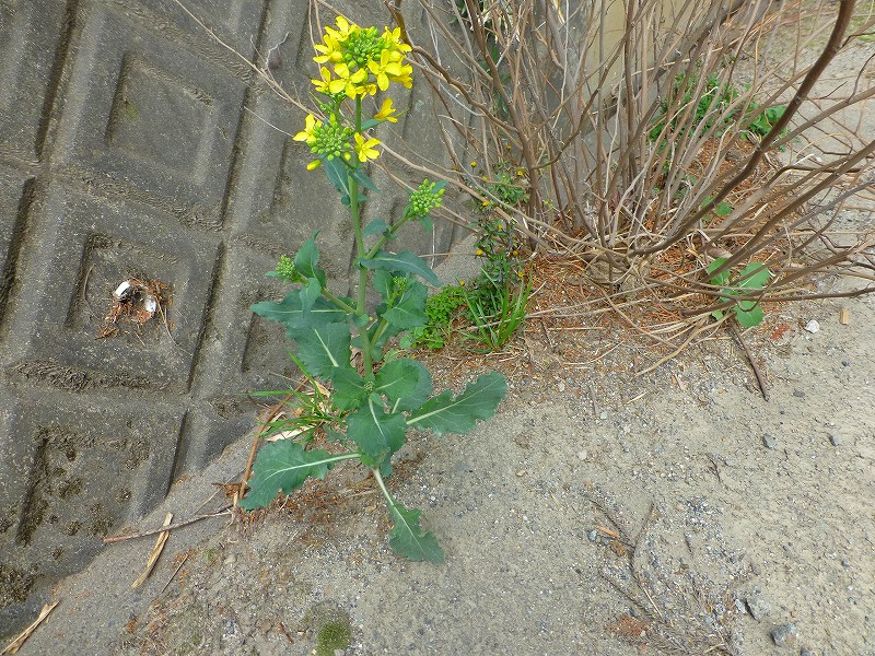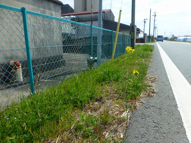 比較的道路幅の狭い県道沿いには、いたるところ農地が広がっています。そこで栽培されるアブラナ科の農作物との交雑の可能性もあり、今後、慎重に調査を行ってゆく必要があると思われます。 |