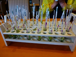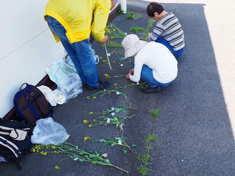 集計の結果、数本のカラシナを含め、239本のナタネを抜取り駆除ました。うち、49本に試験紙による簡易検査を行った結果、約42.9%がGМ陽性であることが判明しました(除草剤ラウンドアップ耐性RR:12.2%、除草剤バスタ耐性LL:30.6%)。