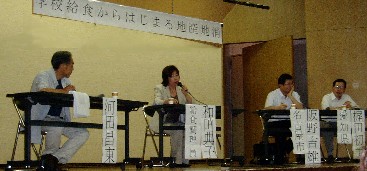 ■04年の冬に行なったシンポジウムでは、食の安全のためには輸入の食糧に頼るのではなく、地産地消を第一に考えた食、経済構造を基本にしなくてはならない。という結論に達しました。そしてそのためには、『食育』が正しくおこなわれなくてはならない。学校給食はそのもっとも有効な場であるということで締めくくられました。その後自治労名古屋学校給食支部の協力を得て、愛知県と名古屋市との会見を試みました。